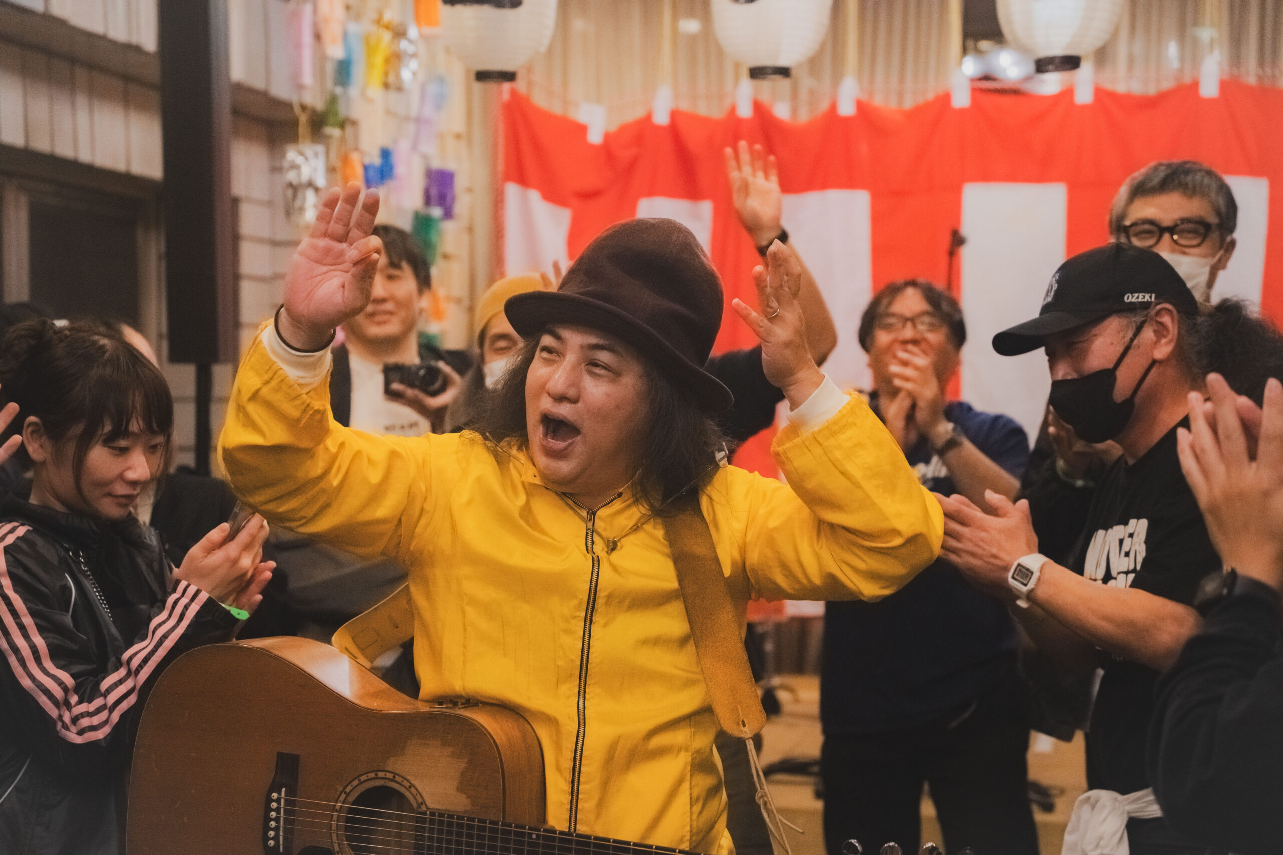 優しいギターとハーモニカの音色とともに「どすこいステージ大トリのボギーでーす!」と宣言すると大歓声。「ぜひ歌詞を聴いてください」と歌われた「値打ち」では、日々の“本当に大切なこと”を静かに問いかける。
