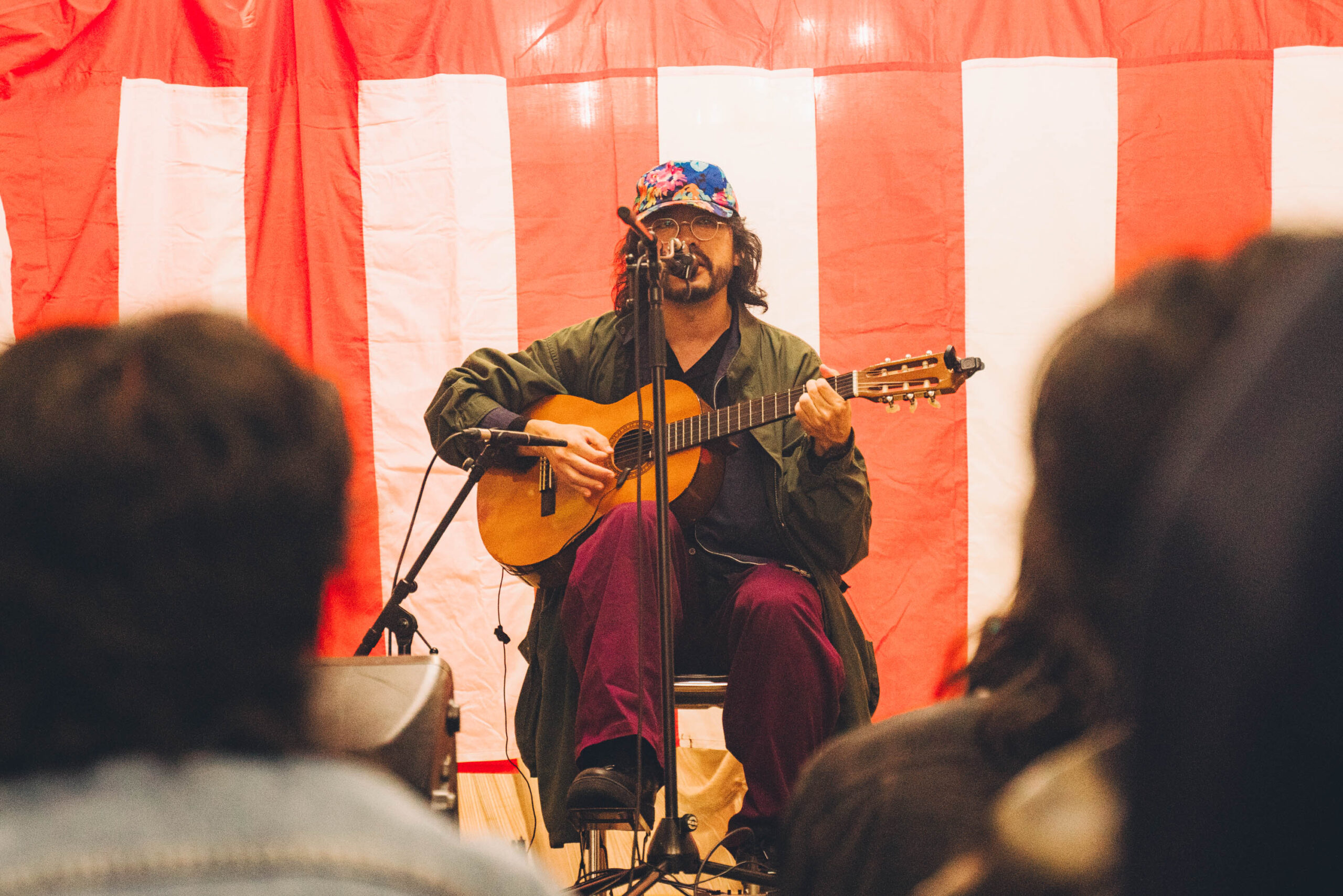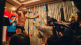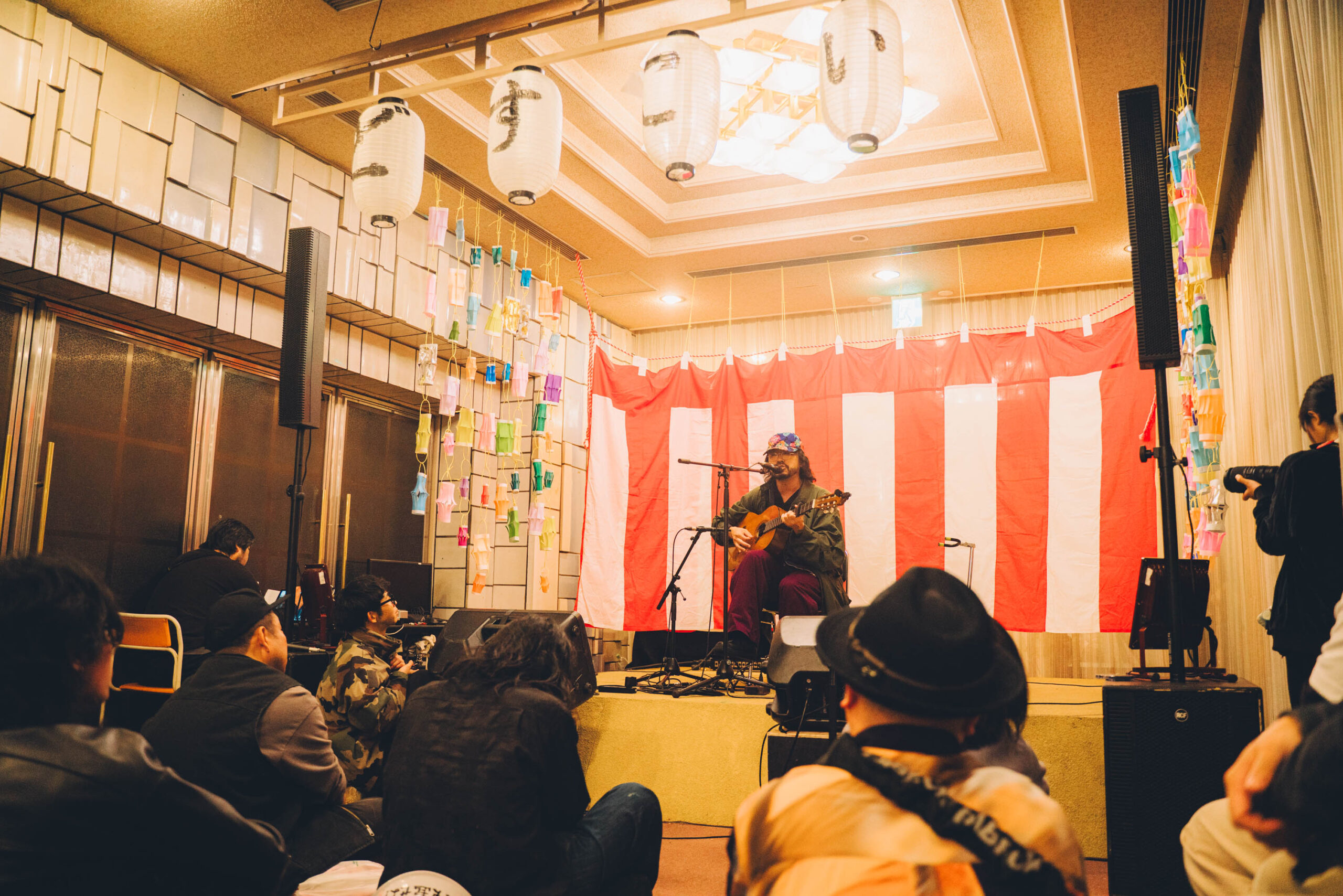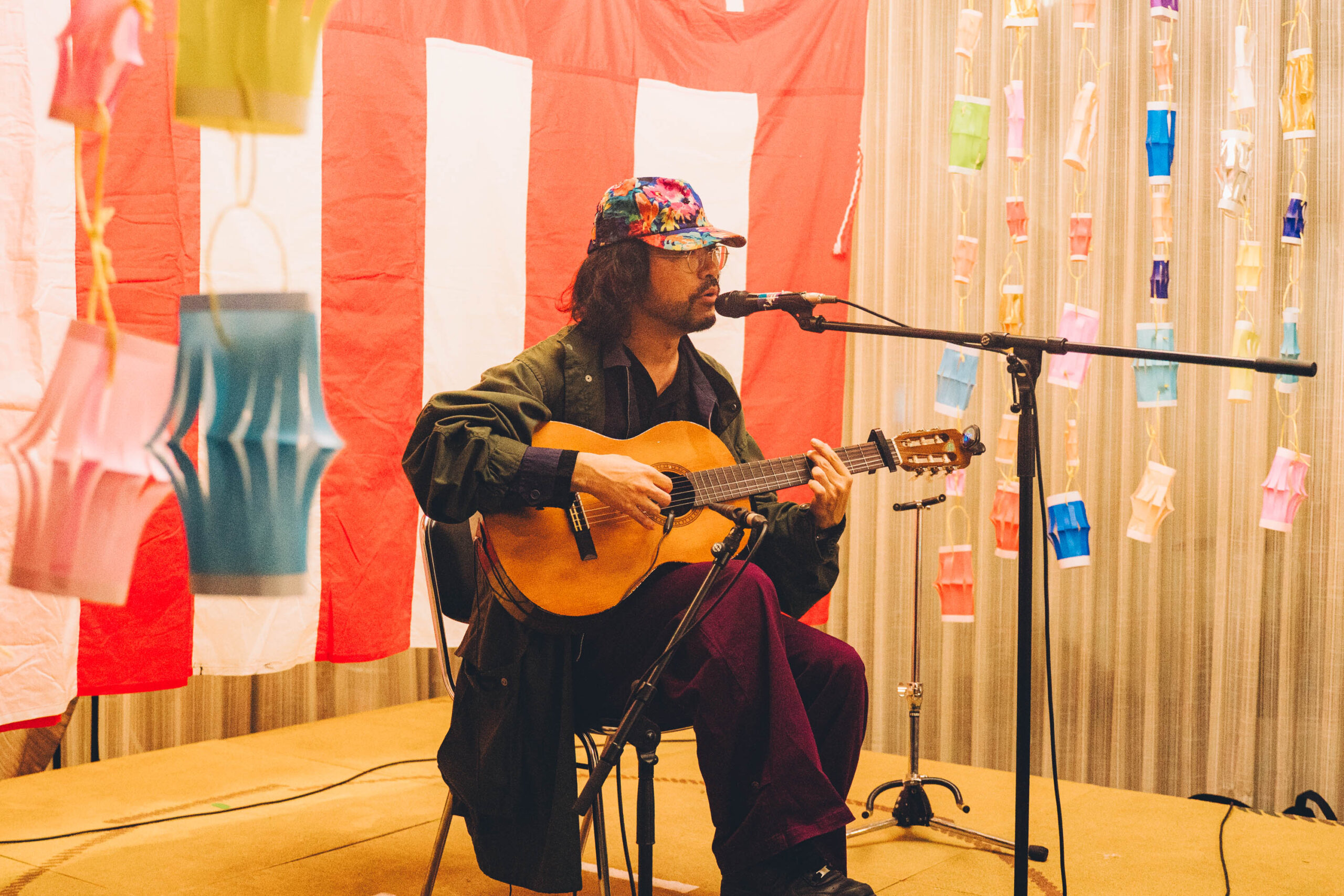1日目も終わりに差しかかる19時前、どすこいSTAGEでヤスエでんじゃらすおじさんは「劇場」を歌い始めた。その力強く伸びのある歌声は、転換タイミングでBIG RIGHT STAGEから出てきていた多くの観客を立ち止まらせた。