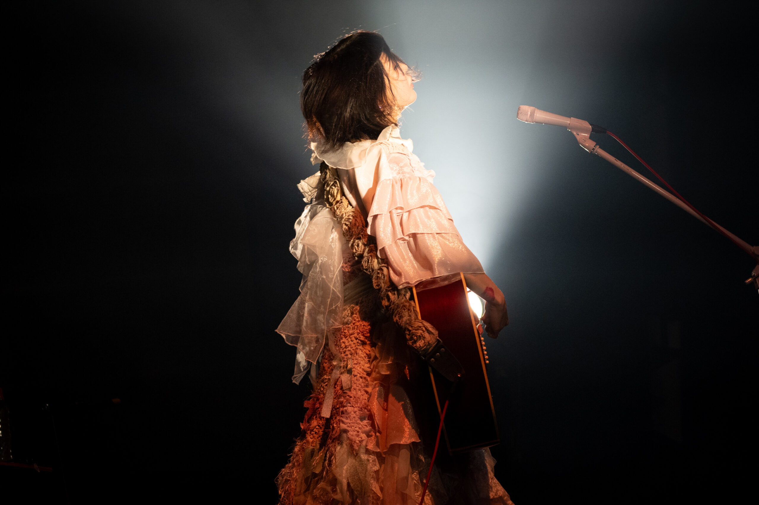 BIG RIGHT STAGEのど真ん中、ギター1本でピンスポットに照らされる大森靖子。