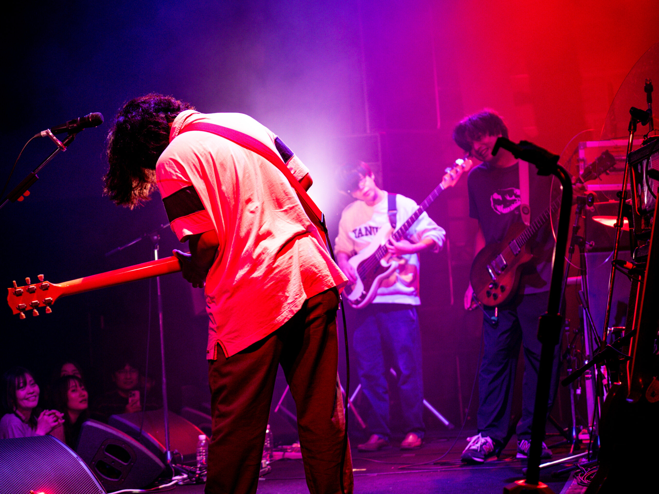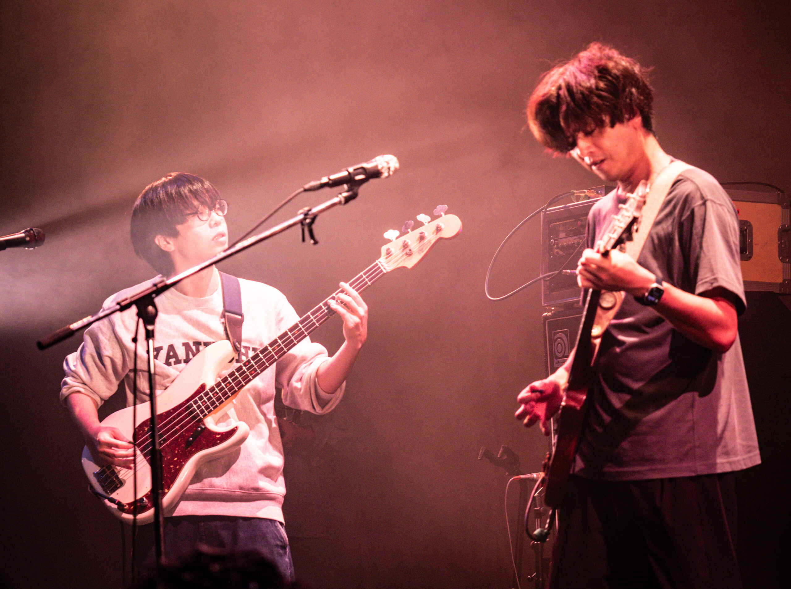続く4曲目「庭と雨」では、四つ打ちのダンサブルなビートがフロアの空気を変え、観客の身体は自然と揺れた。このバンドの演奏には、人の根源を呼び覚ますような力が宿っていると感じた。中盤は「生活の礎」「それだけ」「マイグラント」とミドル・テンポのナンバーが続き、音が身体に染み渡っていく。