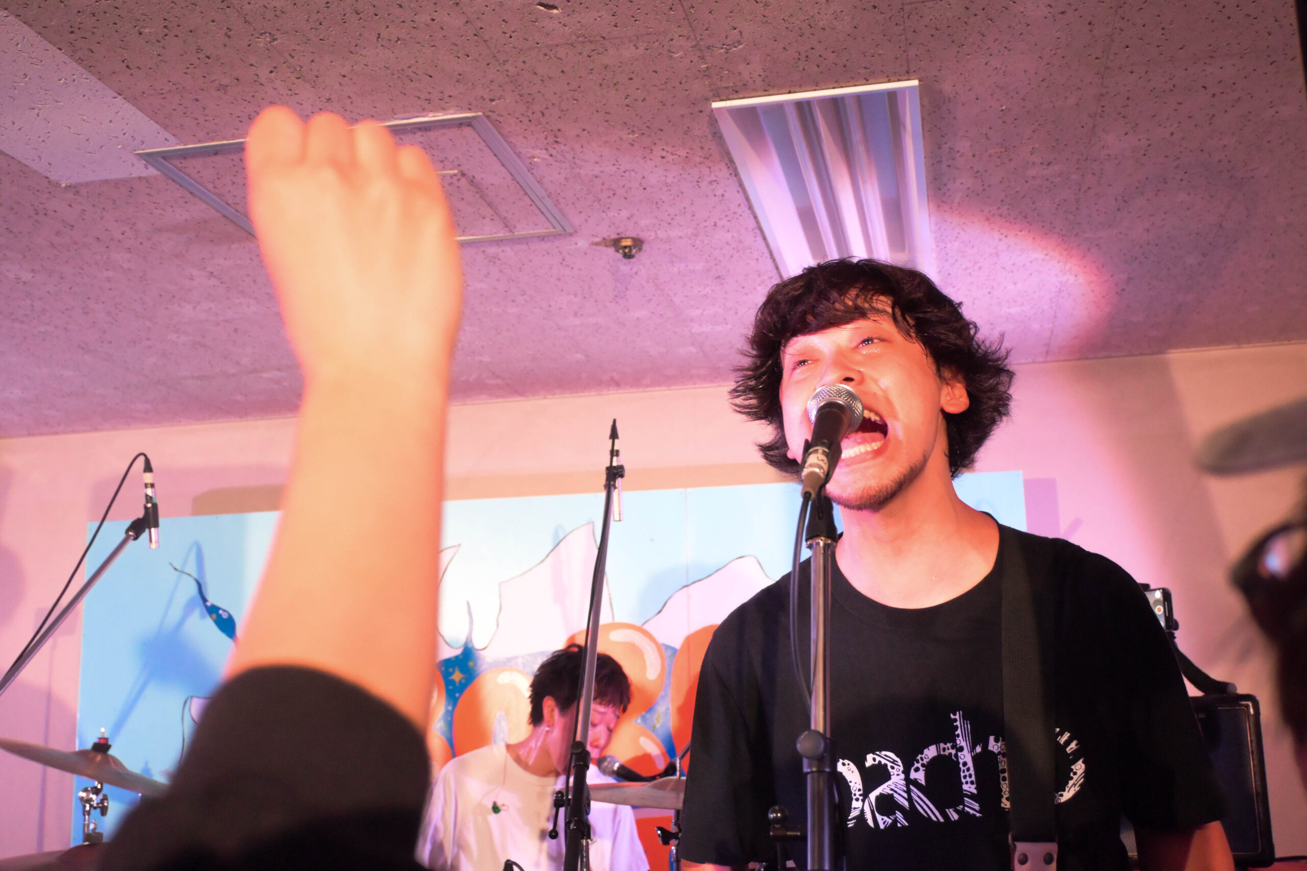 「自由に聴いてくれ、俺たちも自由にするから! 俺たちがRAINCOVER!」と観客に語りかけると、ステージとフロアの距離が一気に縮まる。4曲目「存在声明」では、印象的なギターリフから始まる疾走感あふれるナンバー。叫ぶような歌声に、観客も拳を突き上げる。優しくも力強い音が響き渡り、そこには音楽を、京都を、そしてボロフェスタを愛する人々の共鳴があった。