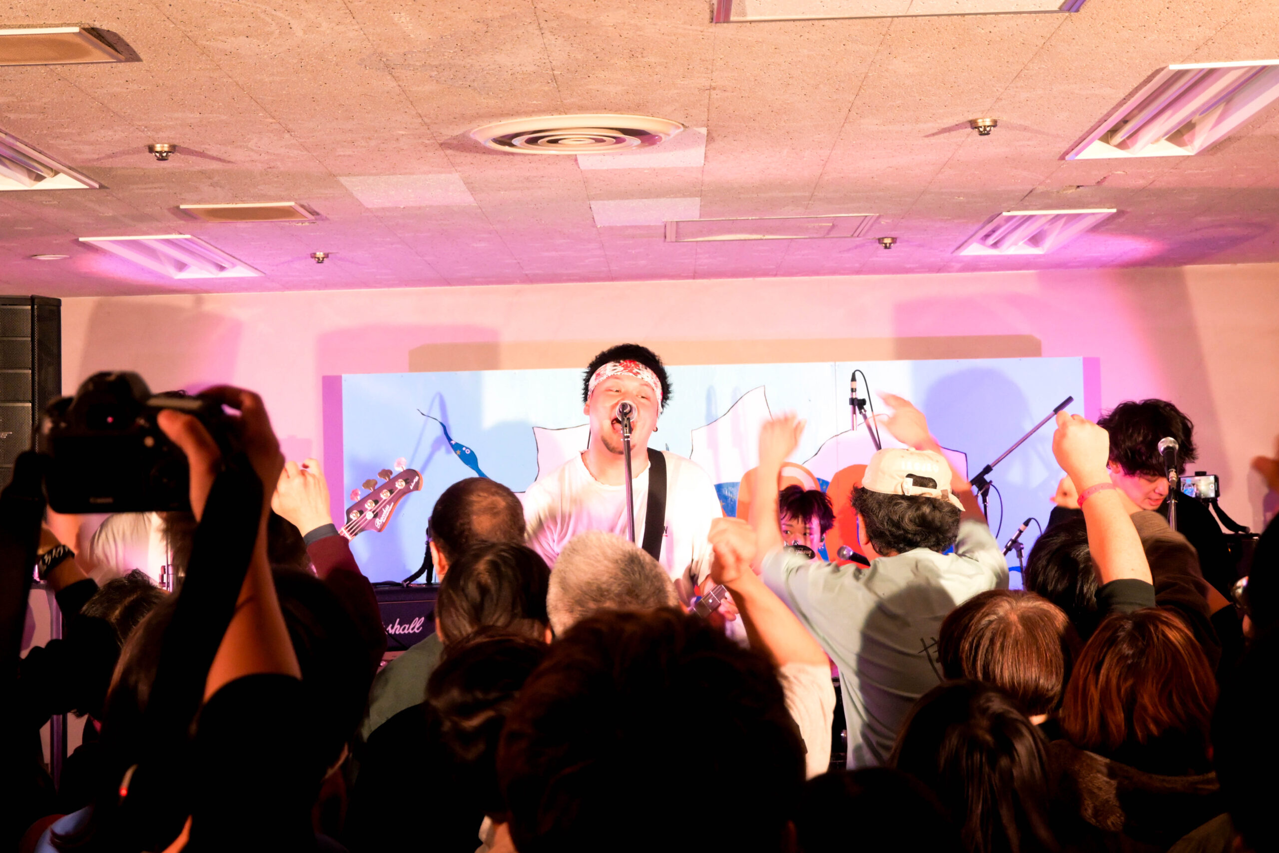 赤いライトで照らされた街の底STAGE。1音目から激しいロックの波動がフロアを掴んで離さない。
