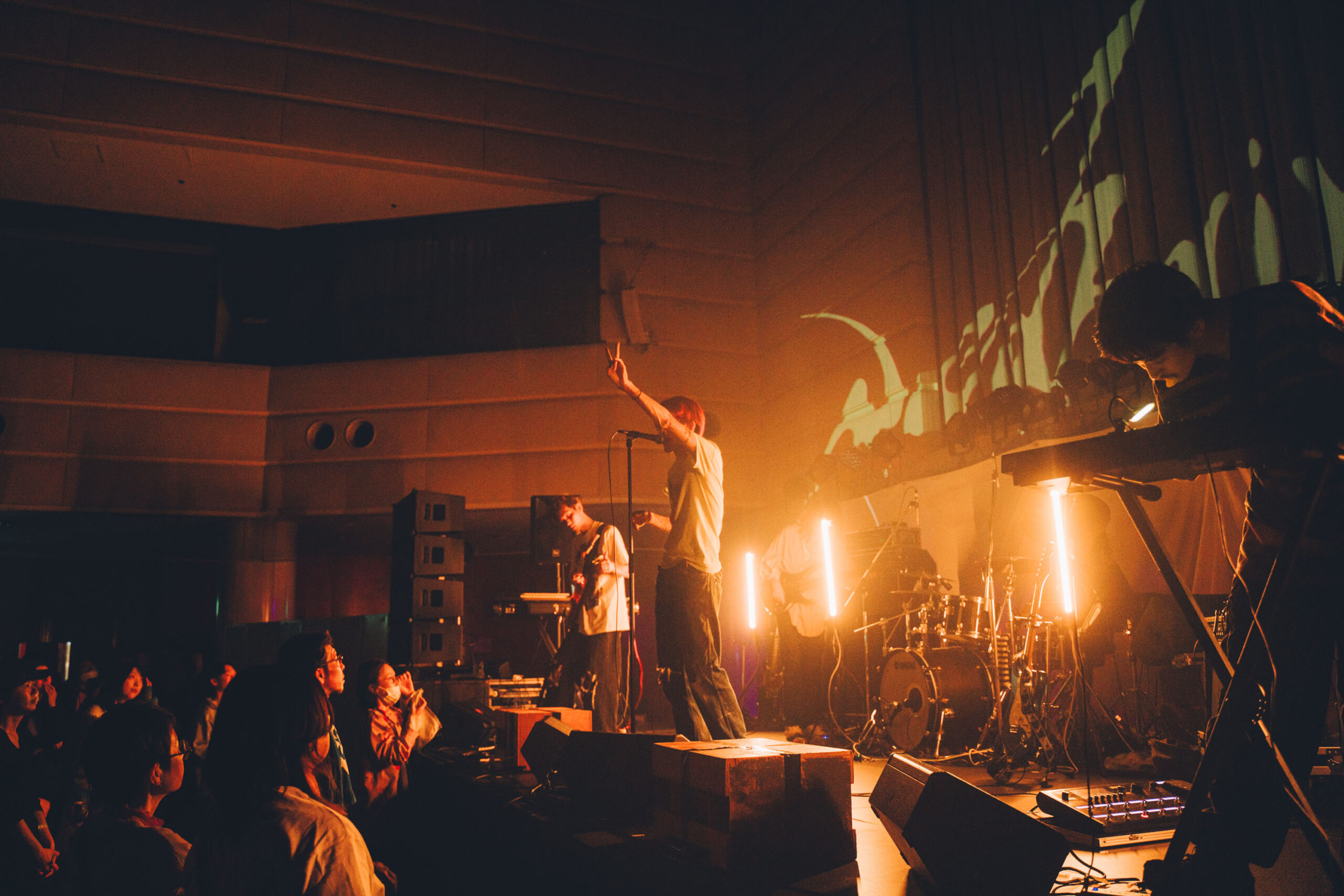 新曲「Radio before school」では、彼ららしいルーズな遊びを交えたマンチェ風味のギターロックが展開され、気づけば手を挙げて飛び跳ねる僕がいた。周りの人々もそんな感じだ。