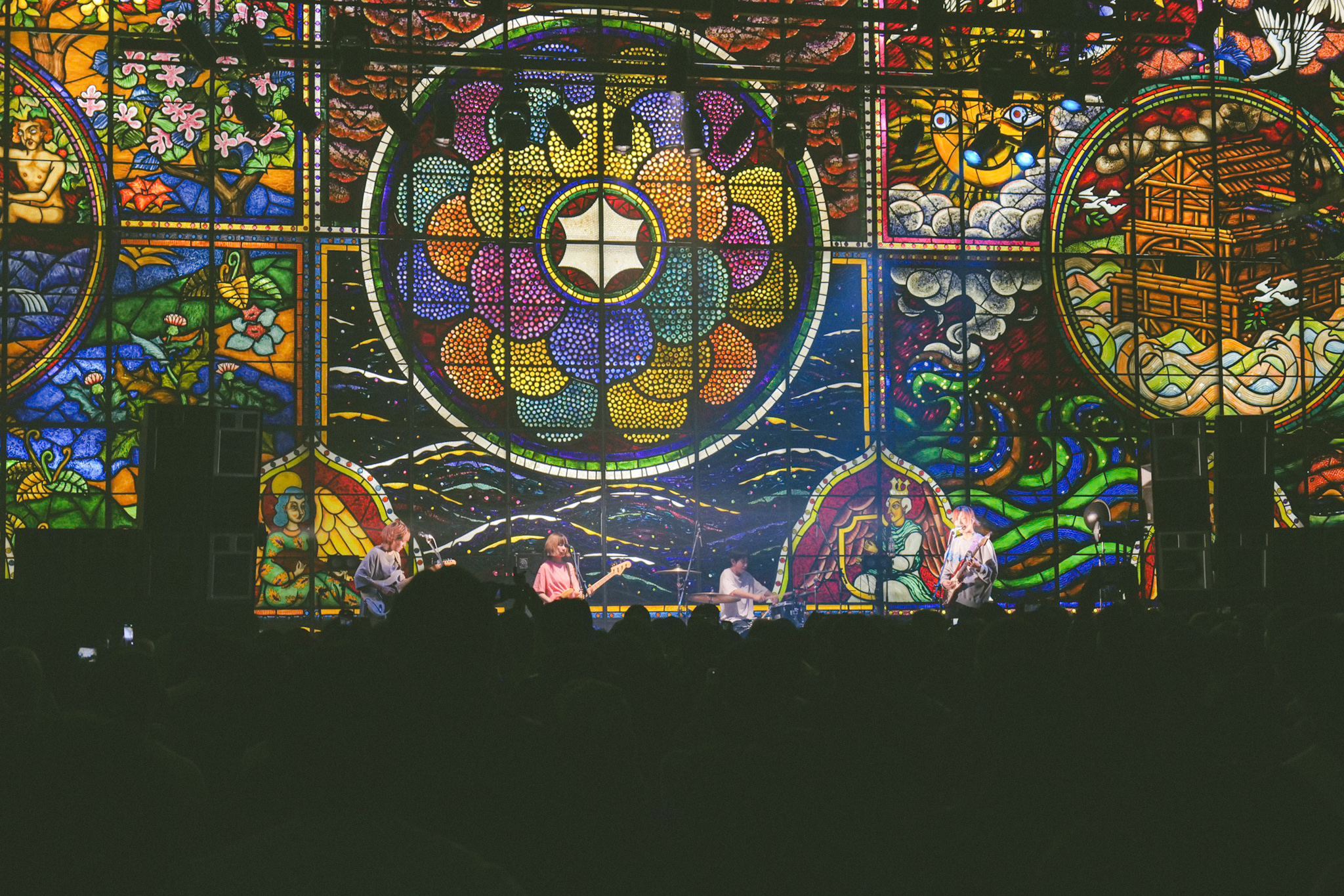 ラストの「夜の魔物」では、暖かく揺らぐアルペジオとともに、芯の通った歌声がホール全体に響き渡っていく。やがてKBSホール名物のステンドグラスのカーテンがゆっくりと開き、美しい光の中でtricotの演奏がきらめきながら、緻密で壮大なステージは幕を閉じた。