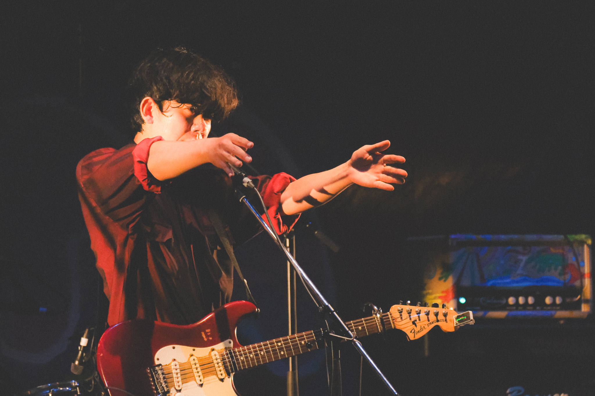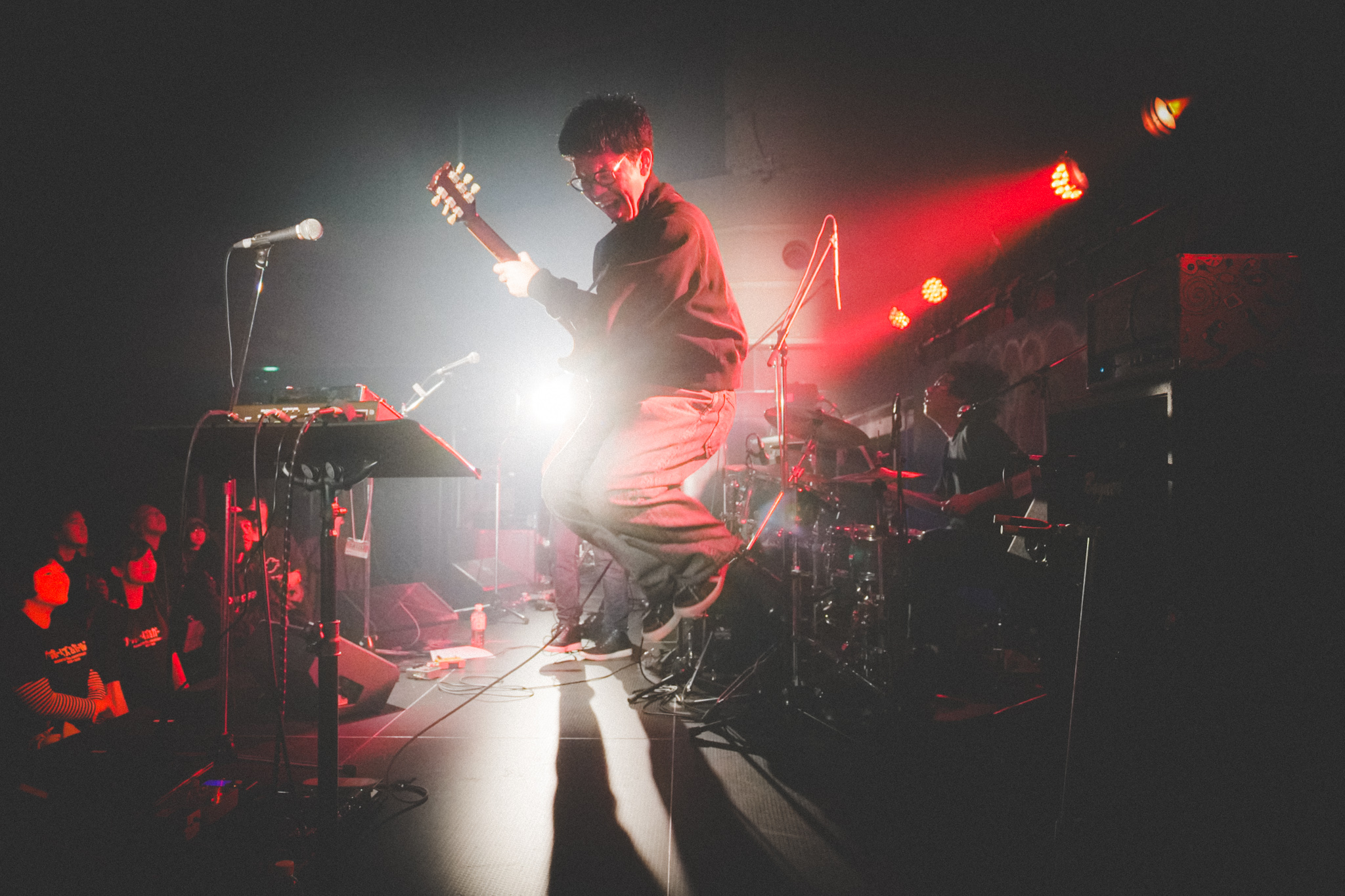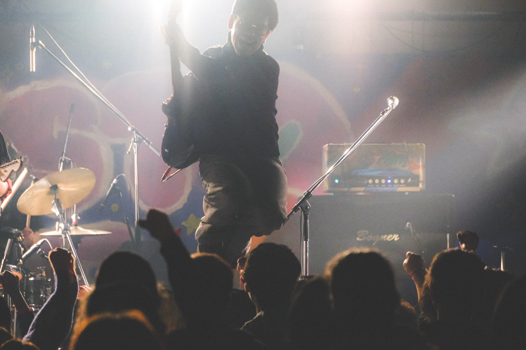 2曲目は「愛を呼ぶ愛してる愛を叫んでるケモノ」。力強く歌うカーミタカアキ(Vo&Gt)に寄り添うように、楽しげにギターを奏でる上村孝太(Gt&Cho)。完成された立ち居振る舞いと安定したプレイで支える清水佑(Ba&Cho)、そしてロックの衝動を体現する稲毛僚也(Dr&Cho)。4人の個性が溶け合い、ひとつの巨大なロックサウンドとなって空間を包み込む。どれほど激しく演奏しても、その余韻はどこか優しい。