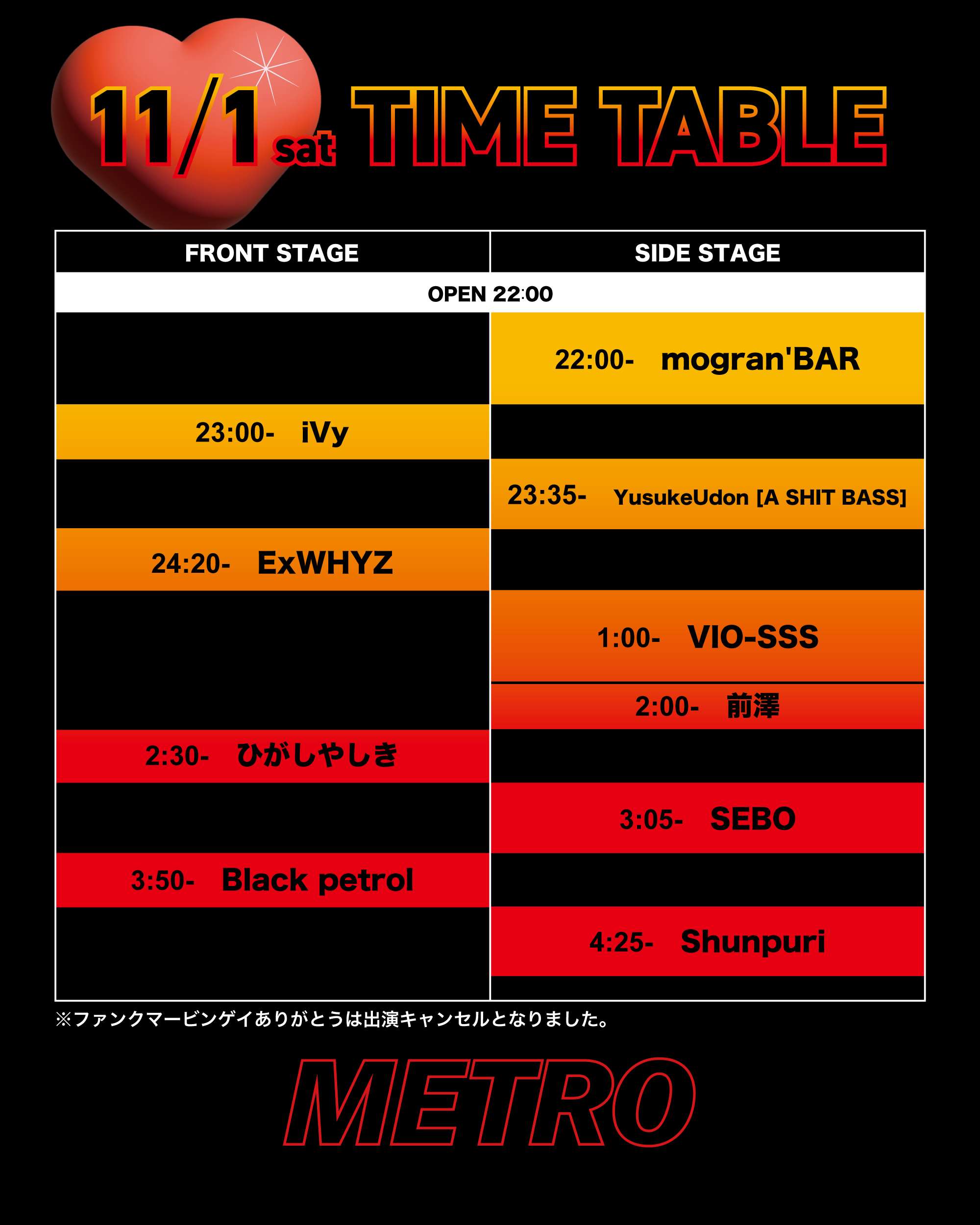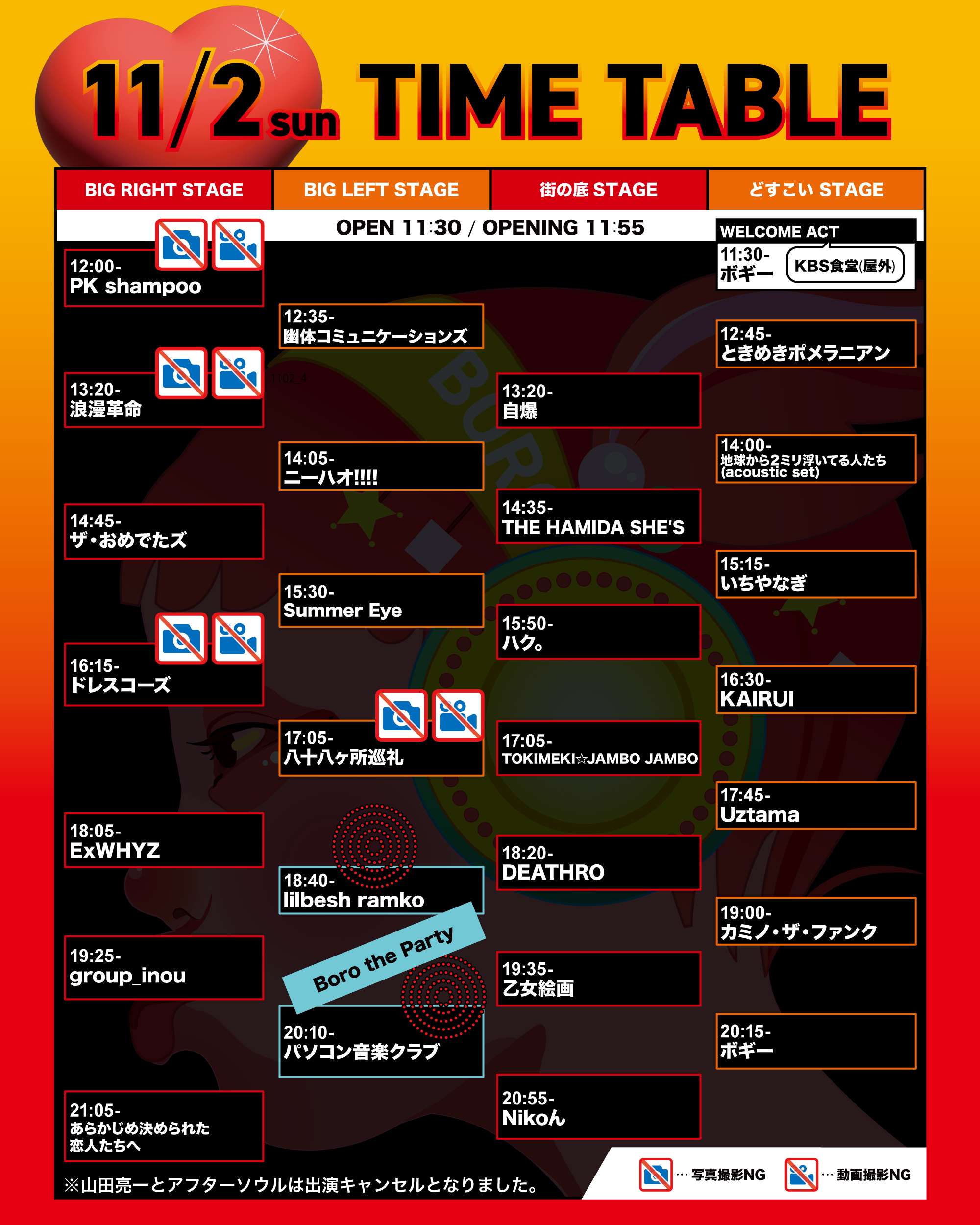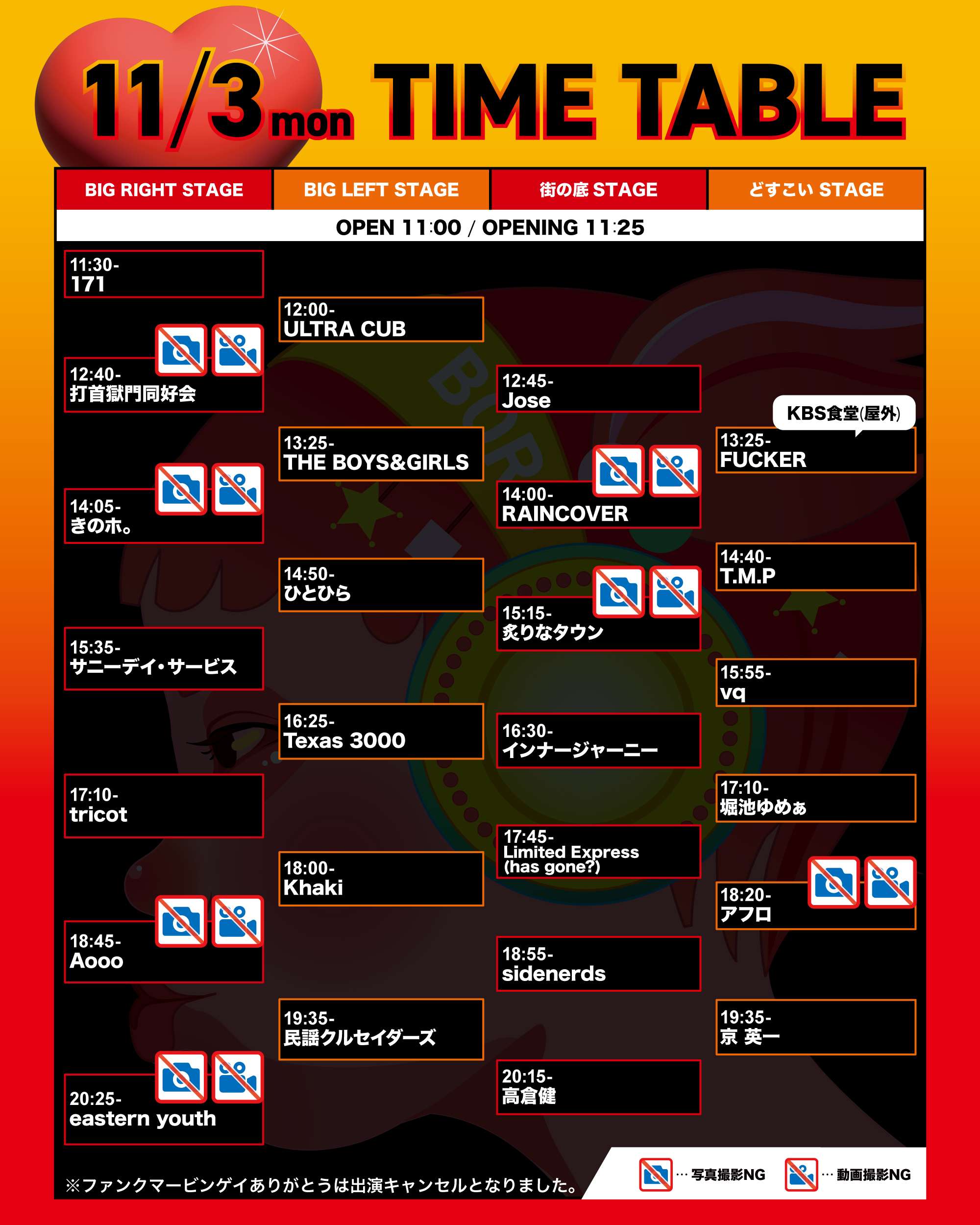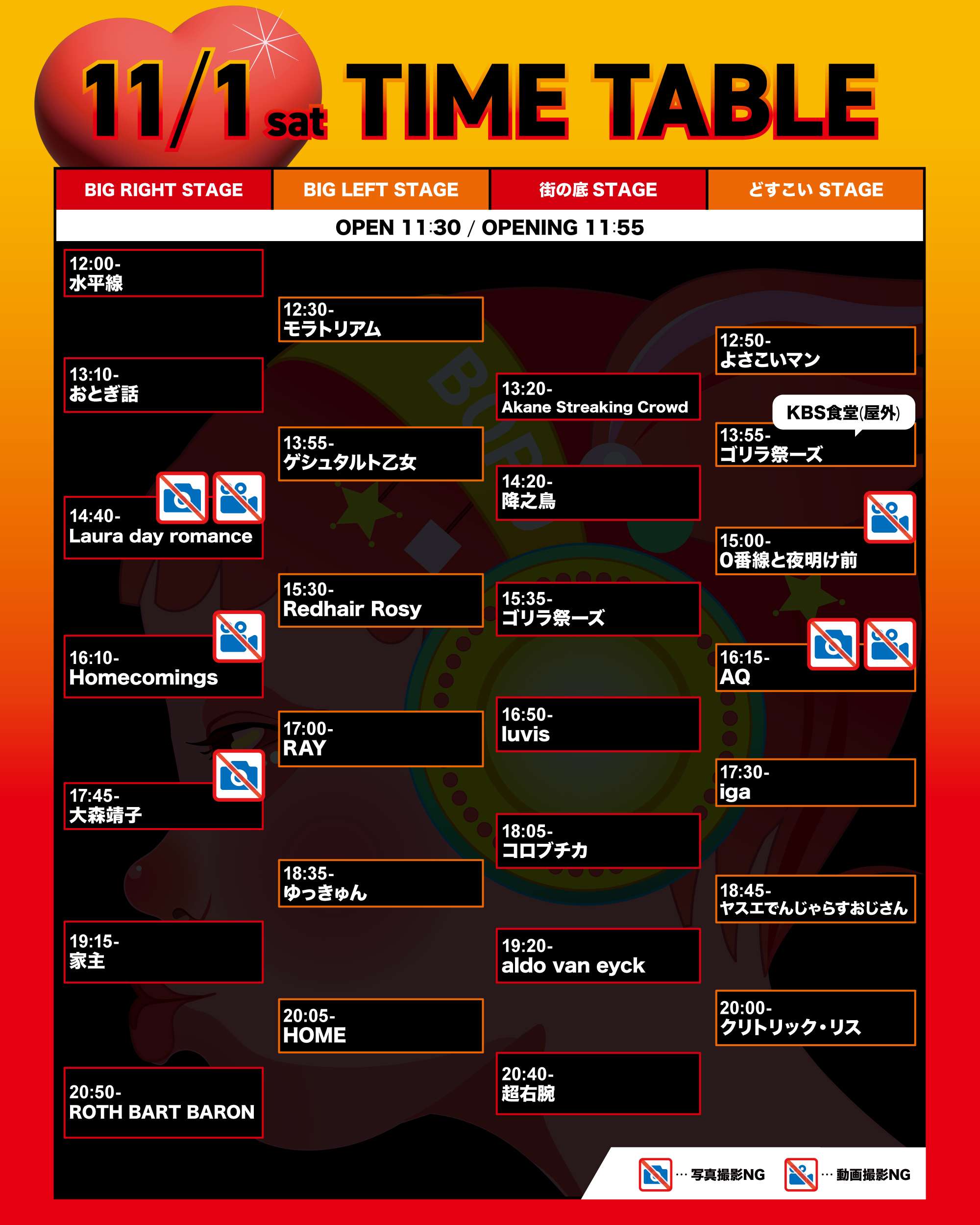 TIME TABLE タイムテーブル TOP TIME TABLE 11/1 KBS 11/1 METRO 11/2 KBS 11/3 KBS 11/1 KBS 11/1 METRO 11/2 KBS 11/3 KBS